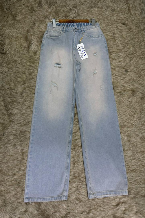 شلوار جین نیم بگ کمرکشی با سایه کرم