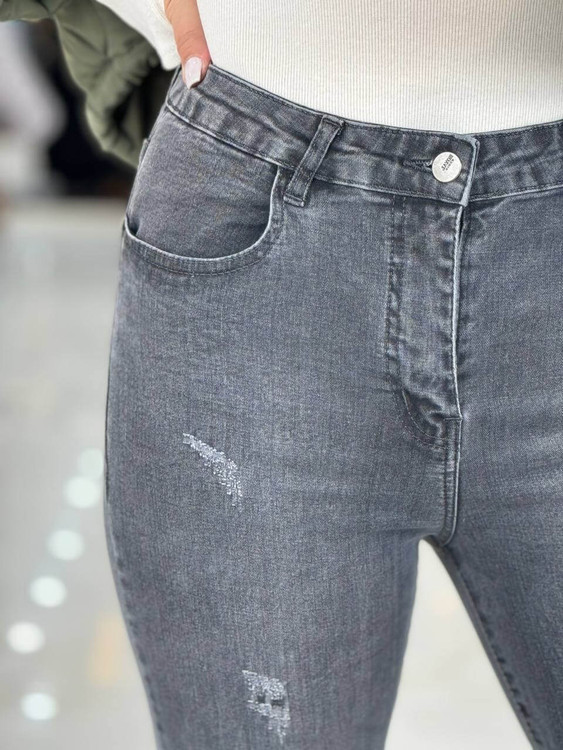 شلوار جین بوتکات طوسی زنانه کمرساده کمرخور فول کش